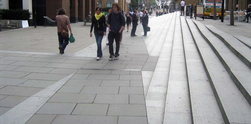 ברגע שנתייחס לנגישות כך, לא נאלץ עוד להוסיף רמפה ולא נתכנן אותה כטלאי, כחלק מ”מהלך להנגשת המקום”. המעבר הרמפתי ישולב כחלק מהאדריכלות, ואולי בכלל יתוכנן הכל מראש כך שלא יהיה פער מפלסי לגשר עליו.